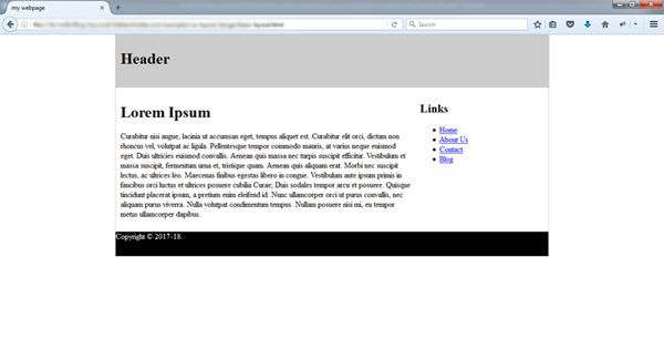 Step 4 को follow करने के बाद content और sidebar अपनी जगह पर आ जाते हैं लेकिन footer की position बिगड़ जाती है, ऐसा इस लिए क्योंकि हमने float property use किया है | जब हम किसी element को float करते हैं तो वह अपने normal flow से हट कर बताये गये direction पर shift हो जाता है, जैसे हमने किसी element को float : left किया तो वह left direction में shift हो जाता है लेकिन उसके बाद वाले element की position बिगड़ जाती है| इससे बचने के लिए हमें बाद वाले element में clear : both का उपयोग करना होगा जिससे float का प्रभाव इस पर नही पड़ेगा|